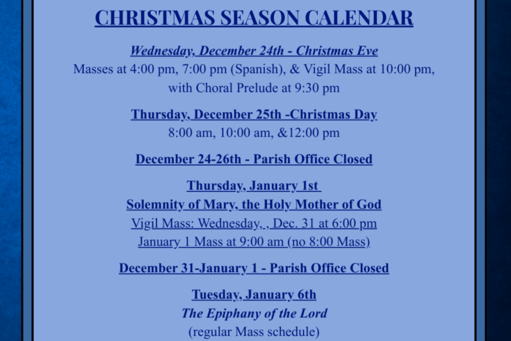 All Daily and Weekend Masses are live streamed and archived for your viewing convenience.